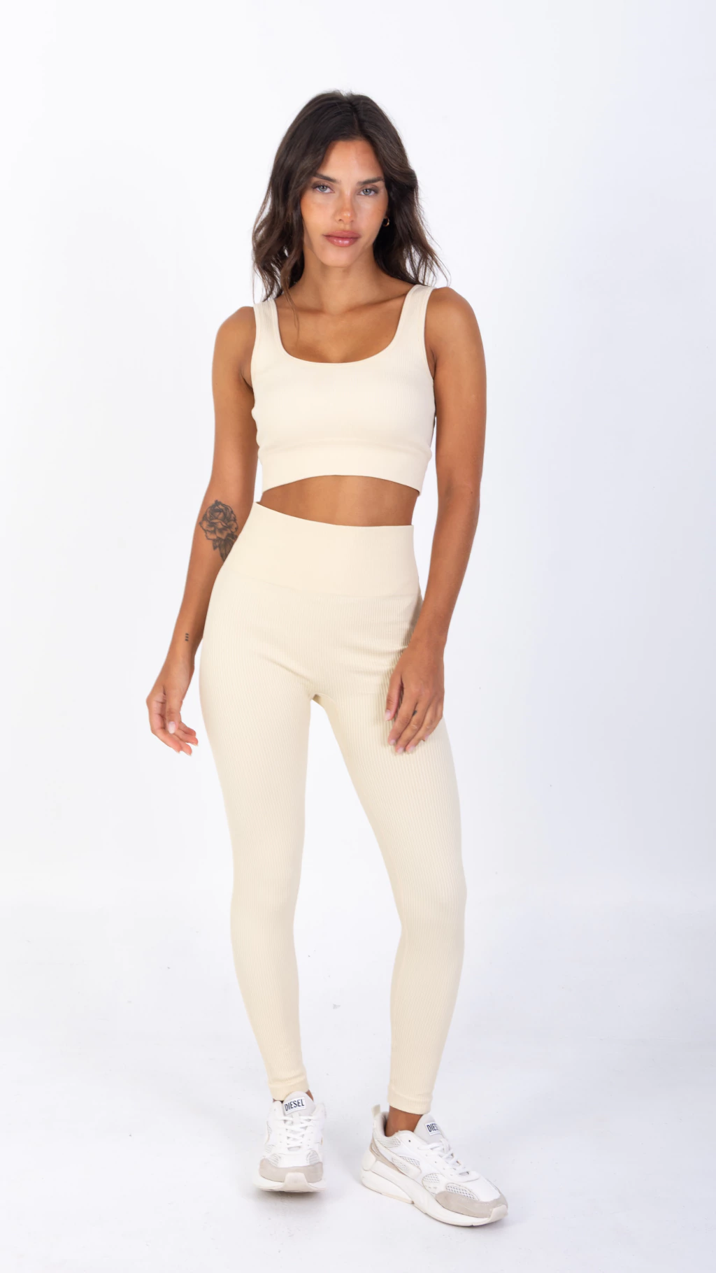 El set Tesira está diseñado para brindarte libertad, suavidad y un ajuste perfecto. Con top micro de escote cuadrado y leggings sin costuras con push up, su tejido canalé y elástico de alta calidad (90% poliamida, 10% elastano) se adapta al cuerpo realzando la figura sin restringir el movimiento.